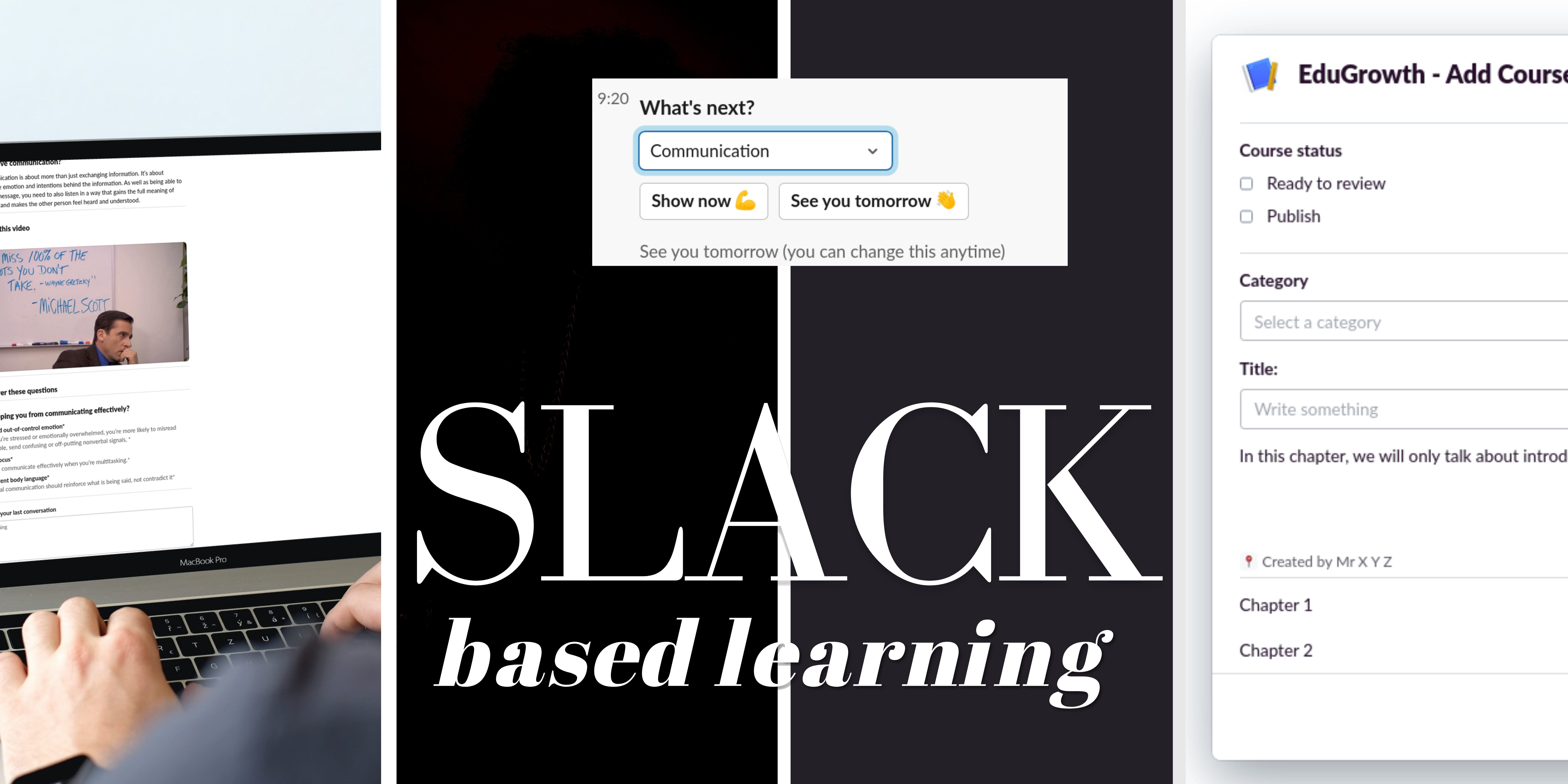 By using our slack first LMS system within your slack workspace, you can provide an smooth learning solution for your employees.
